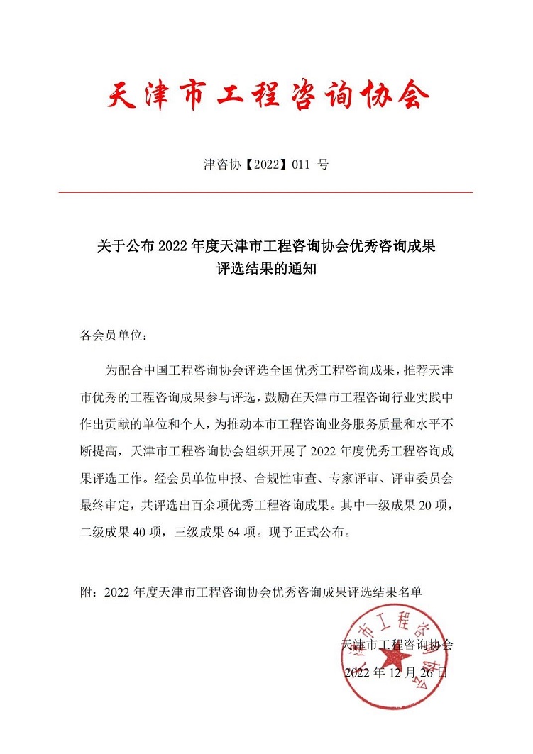 東方泰瑞公司喜獲天津市工程咨詢協(xié)會(huì)2022年度“優(yōu)秀會(huì)員單位”等多項(xiàng)獎(jiǎng)勵(lì)