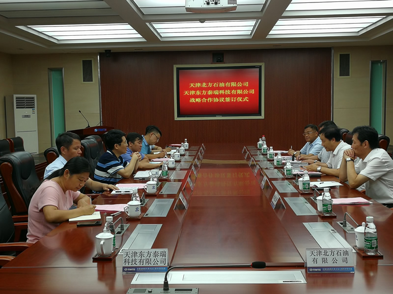 更新時間: 點擊:6837 所屬欄目:公司新聞 Update Time: Hits:6837 Belong Column:News2018年7月24日下午,天津北方石油有限公司和天津東方泰瑞科技有限公司戰(zhàn)略合作框架協(xié)議簽約儀式在交通運輸部天津水運工程科學研究院隆重舉行。北方石油涂建平董事長、副總裁蔡惠平、聯(lián)合運營總經理張志鳴、北方港航總經理吳剛、HSE安委辦主任李恩強以及副主任高頻參加簽約儀式。天科院朱建華副院長、公司詹水芬總經理、副總經理兼總工程師王緒亭、技術負責人肖竹韻、評價與咨詢部部長李俊峰以及部長助理潘猛、項目經理薛榮榮等參加會議。