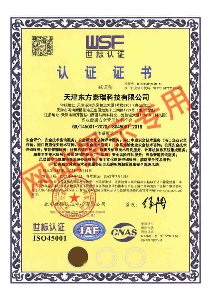 ISO45001職業(yè)健康安全管理體系認(rèn)證 更新時(shí)間:2025-10-22 點(diǎn)擊:87 所屬欄目:公司資質(zhì) Update Time:2025-10-22 Hits:87 Belong Column:Qualifications
